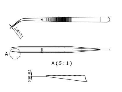 Antimagnetic/Anti-acid - STAINLESS STEEL - EPOXY - Tips Type: Angled, Pointed, Thick/Strong - Handle: Serrated - ESD-Safe: YES - OAL (mm): 155