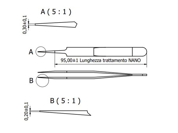 Antimagnetic/Anti-acid - STAINLESS STEEL - NANO - Self-Cleaning - Tips Type: Straight, Pointed, Super Fine - Handle: Classic - ESD-Safe: NO - OAL (mm): 115