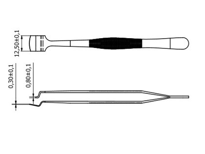Antimagnetic/Anti-acid - STAINLESS STEEL - Sandblasted - Tips Type: Dobble Bent, Wafer, Thick/Strong - Handle: Serrated - ESD-Safe: NO - OAL (mm): 130
